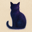 猫のシルエット、ダークブルーとパープル、神秘的、人が描いたような手書き感、温かみのある筆のタッチ